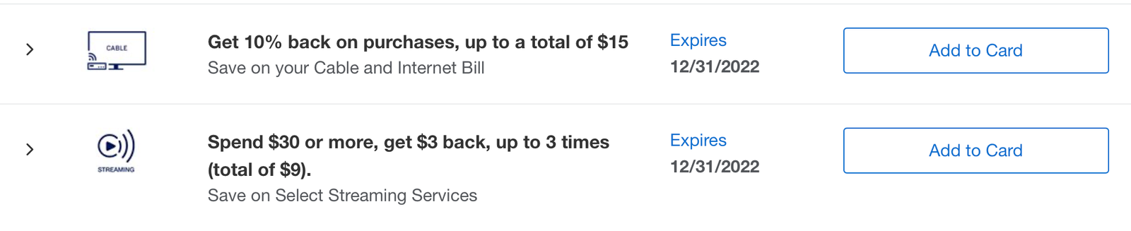 If you do have them, be sure to add the Offer to your card, and use that card to pay for the specific service for which it's offering a savings.