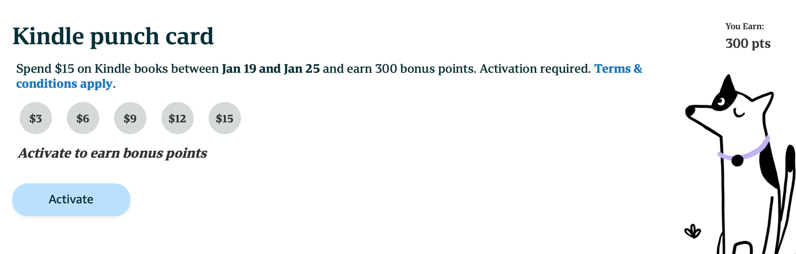 And, as has always been the case, you must activate the promotion to earn the bonus points on purchases. You can do so at the Kindle Rewards link below. Look under the "Your Bonus Offers" header. If you aren't part of the Kindle Rewards Beta program, you likely can't access this promo.