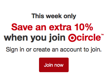 [Ended] Target is offering new members to its Target Circle loyalty program a 10% off coupon good on one item. The sign-up promo is good now through September 26, 2020.
