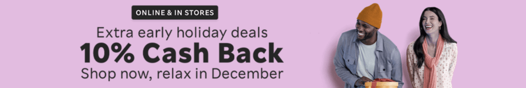 Purchases made via Rakuten will earn 10% cash back today only.