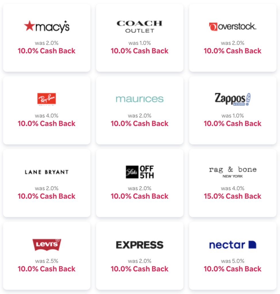Purchases made via Rakuten will earn 10% cash back today only.