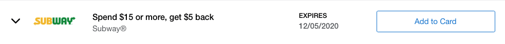Subway Amex Offer – Spend $15 Get $5 Back